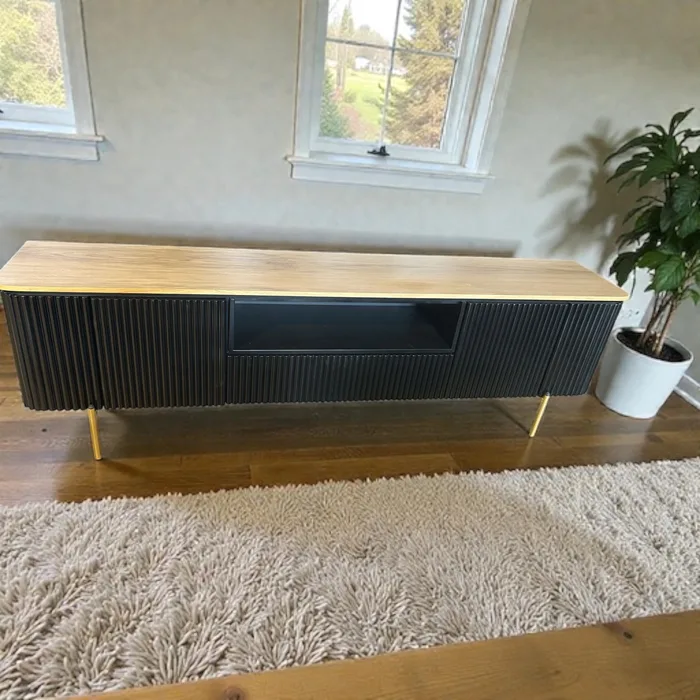 המזנון עומד על רגלי מתכת יציבות ומינימליסטיות, המעניקות לו מראה מרחף ויוקרתי. אידיאלי לטלוויזיה, לאחסון ולשדרוג מראה הסלון.