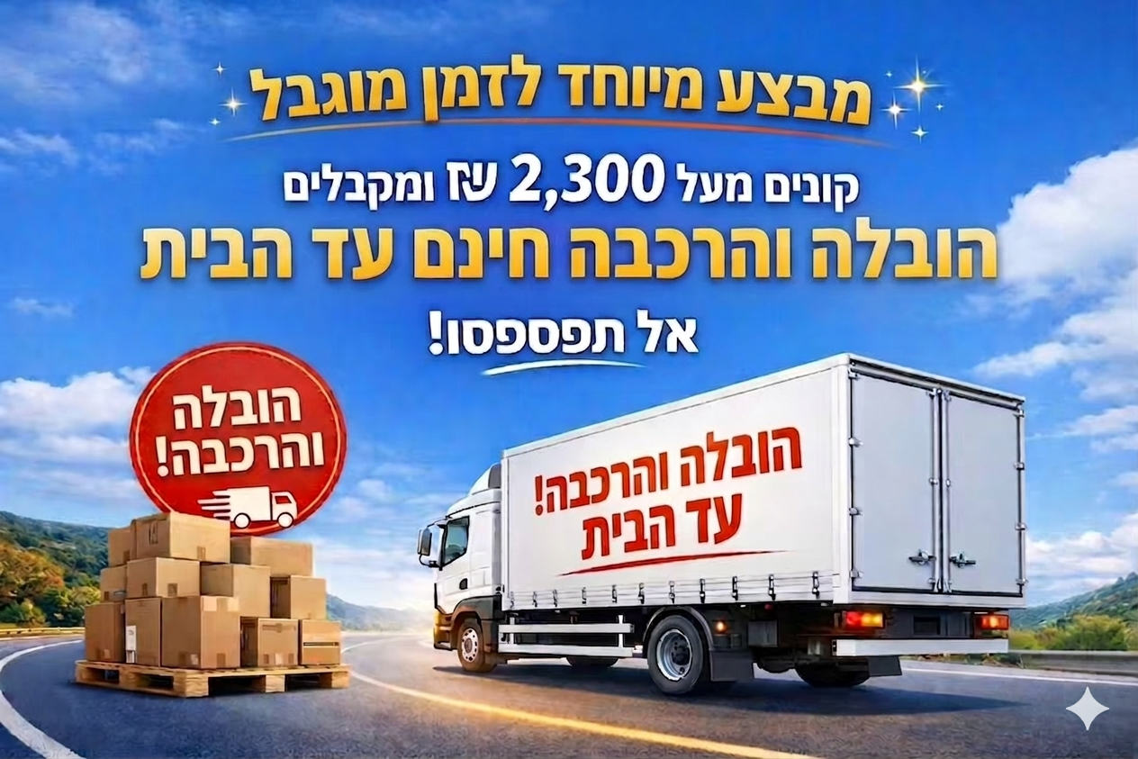 - תוספת לעלות הובלה רגילה: 50 ₪ לכל קומה לתשלום מול המוביל