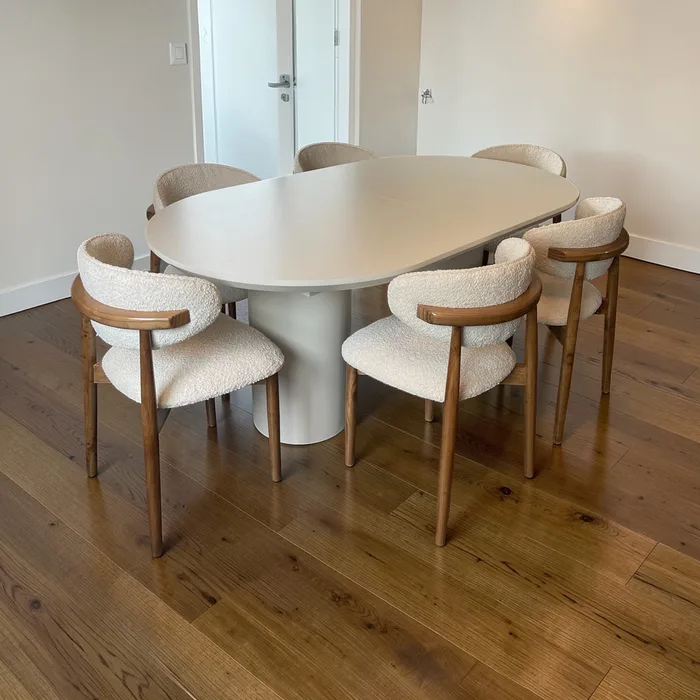 השולחן באורך 180 ס״מ נפתח בקלות עד 280 ס״מ, ומאפשר אירוח מרווח ונוח מבלי להתפשר על אסתטיקה. הכיסאות המרופדים משלימים את החוויה עם נוחות מקסימלית, גם בישיבה ממושכת. ניתן לבחיר בכל צבד וצבע.
